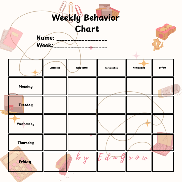 - ๐จ๏ธ 1 Printable Behaviour Chart (PDF) โ NOT editable